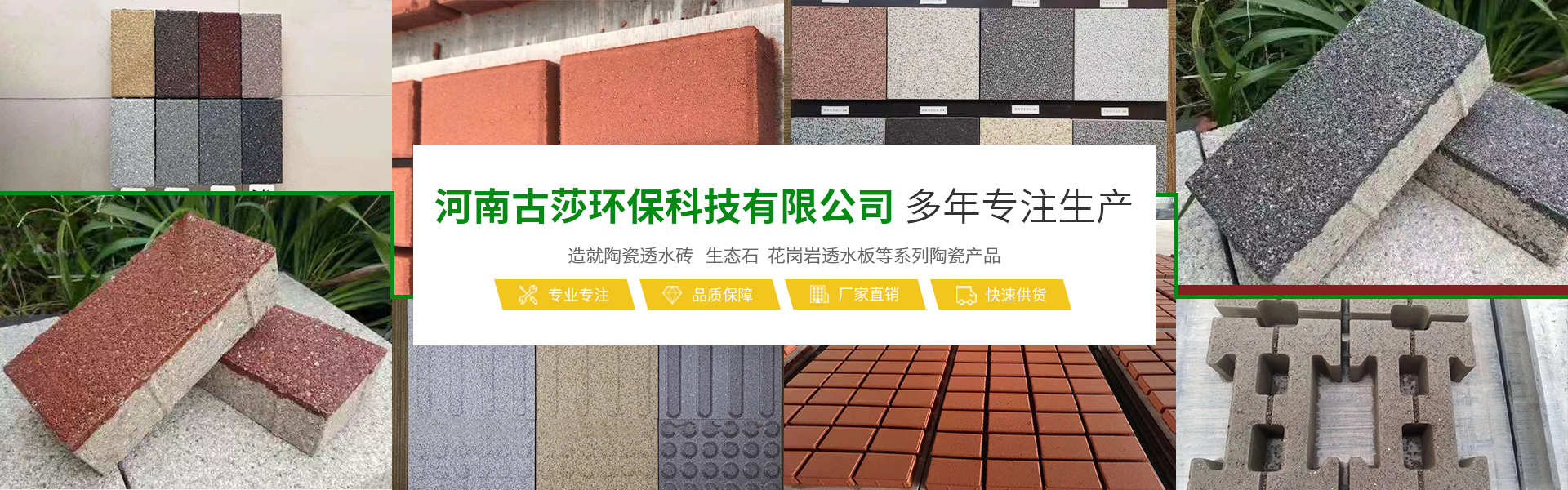 河南古莎環(huán)保科技有限公司總坐落于交通樞紐城市鄭州,是一家具備研發(fā)、生產(chǎn)、銷售能力為一體的綜合性現(xiàn)代化陶瓷企業(yè)。本公司專業(yè)生產(chǎn)經(jīng)營(yíng)生態(tài)陶瓷透水磚、生態(tài)鋪石、PC仿石材透水磚、PC仿石材景墻磚、普通透水磚、燒結(jié)磚等系列產(chǎn)品,完善的研發(fā)團(tuán)隊(duì),完善的生產(chǎn)流水線設(shè)備,打造完善的陶瓷企業(yè)。古莎環(huán)保科技現(xiàn)代化陶瓷企業(yè)是美化城市,改善生活環(huán)境質(zhì)量的生態(tài)環(huán)保產(chǎn)品,可廣泛應(yīng)用于公共建筑廣場(chǎng)、城市道路、公園、藝術(shù)景觀、廊道、房地產(chǎn)、別墅住宅小區(qū)、地鐵口、車站、高速公路服務(wù)區(qū)等。古莎環(huán)保科技在原有陶瓷企業(yè)基礎(chǔ)上,另拓展園林綠化、市政施工、瀝青包工包料施工、公路維修等業(yè)務(wù)板塊,專業(yè)培訓(xùn)了一些園林綠化、市政施工技術(shù)人員,并有多年的施工養(yǎng)護(hù)經(jīng)驗(yàn)以及建筑工程經(jīng)驗(yàn)。保證市政工程施工質(zhì)量以及園林綠化后期養(yǎng)護(hù)規(guī)范化、專業(yè)化。古莎環(huán)保科技所遵循的企業(yè)與品牌發(fā)展思路,是奠定在品質(zhì)與產(chǎn)品應(yīng)用之上。環(huán)保理念由我們共同倡導(dǎo),理性思考,以推進(jìn)步,感性溝通,以共建優(yōu)越。古莎環(huán)保科技與大家真誠合作,攜手共進(jìn),為助力海綿城市建設(shè),建筑高品質(zhì)的綠色城市生活貢獻(xiàn)一份力量!